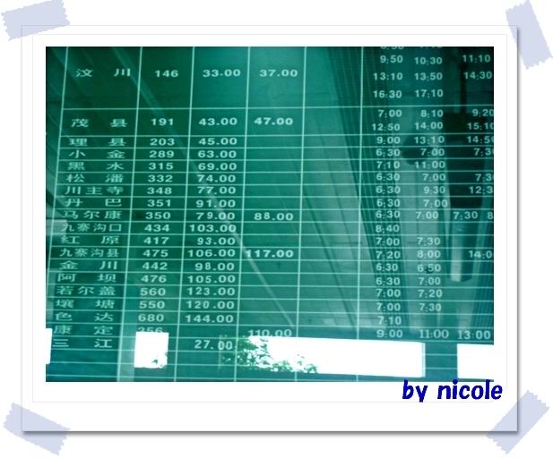 勉强吃过了饭,我们开始了有目的的散步,坐上了公共汽车去茶店子买票。总觉得了解一个城市,首先你得走进他的百姓生活中去。而公交车,菜市场,闹市区则是反映这个城市生活的一个很好的侧面。这是一个平日的午后,车上人不多,三个人互相拍照嬉笑,很快到了茶店子——我知道这里将是我梦想开始的地方,有一点点激动。这时候的茶店子还只是个普通的长途车站,这时候的我也远没想到两天后我们出发的早上,它成了背包的海洋。