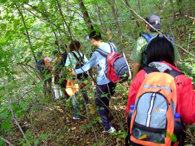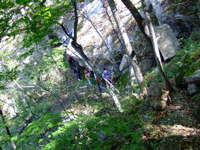天桥沟—— 逃票的路段不是穿沟就是登峰! 大家的体力在此路段严重消耗! 有不少同学开始陆续架拐! 带路的老者估计到了我们可能会有坚持不住的!所以随身带了把锯,谁说累了,就给谁作个拐棍,崩说,还真就管用!唉,这时候看出登山丈的好处了! UutlBeDK.jpg 天桥沟—— 这一段两个半小时的逃票路真是穿越了! 无路!沟沟坎坎的! 原始森林!还夹杂着动物的怪叫! BYSuvsKQ.jpg