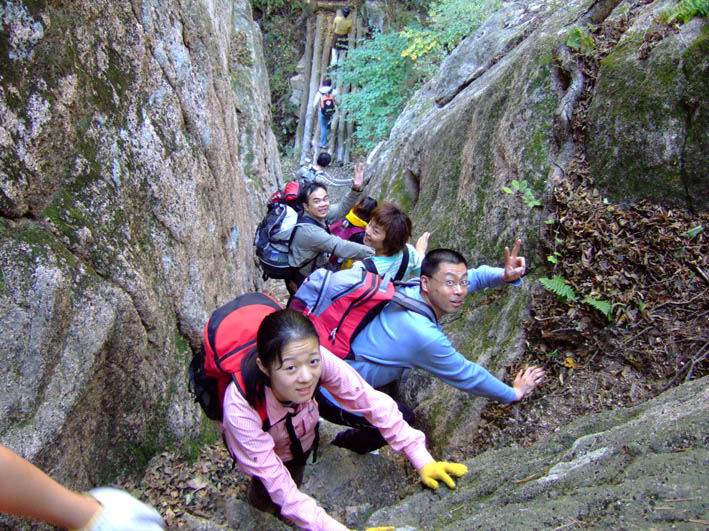 天桥沟—— 休息一阵之后,有十三名同学选择了继续进发,向玉泉台上升! 勇气可嘉! 坚持到最后的人员名单如下:pipalila(挠挠)、信用证、国标+2、信用卡、dboywj、maggie2005+1、likedream+3————一共13人! fDKLsqFp.jpg 大家仍然选择重装上阵! KWJuA0Qi.jpg