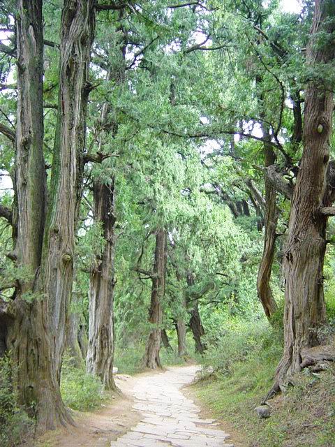 翠云廊以剑阁古城为中心,号称“三百里程十万树”,其间古柏夹道,遮天蔽日,宛然如廊。廊中古柏上自秦汉,下迄明清,现存古柏八千余株,大多数树龄都在1700年以上。