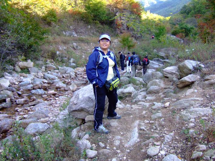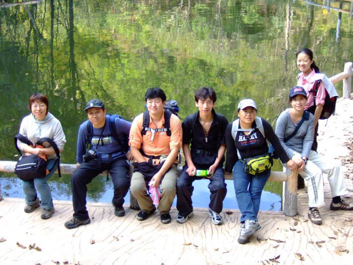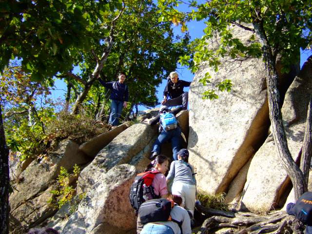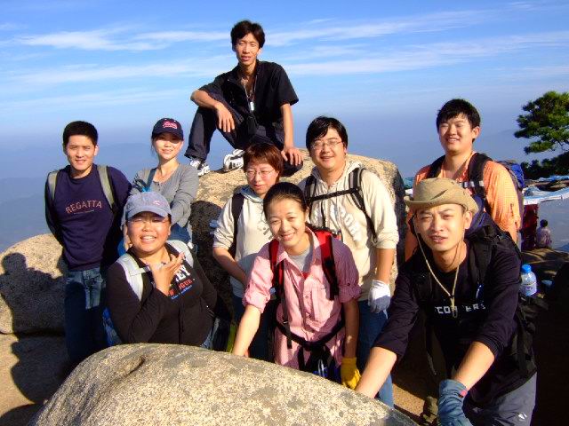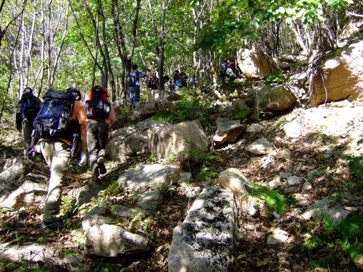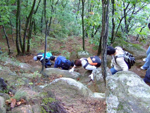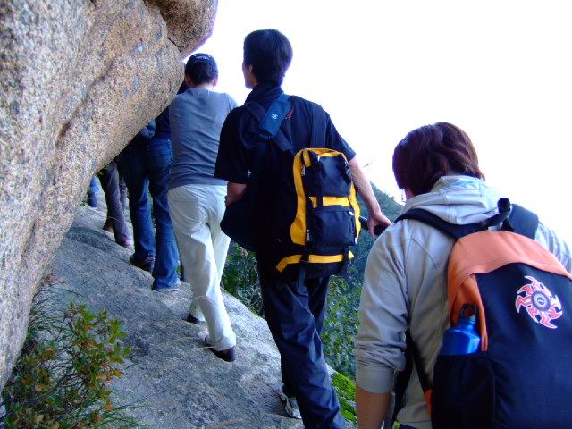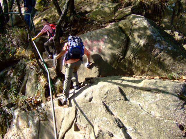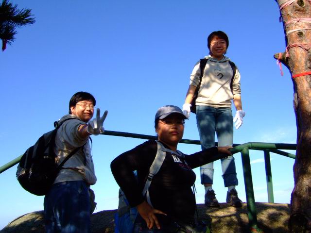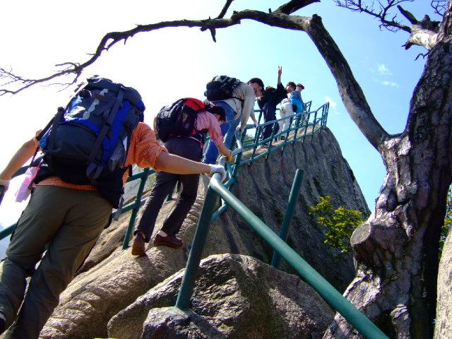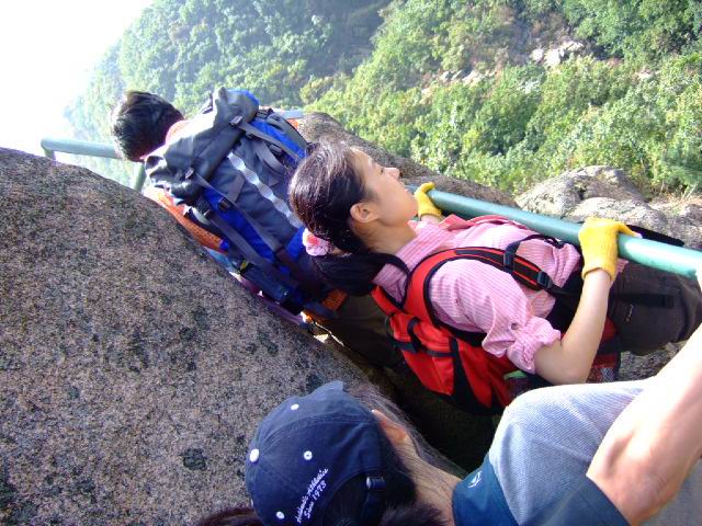 因为人比较多,怕大家体力差距比较大,俺还是决定断后,让俺老婆领路,实在不行就哄着走!事实挠挠是个非常优秀的同学,带路,协助每个同学过危险处,为大家拍照……好同志,非常感谢!还好,虽然大伙几乎都不熟,但很快大伙就打成一片,欢歌笑语登山之后就开始响起!我的担心还是多余的!
