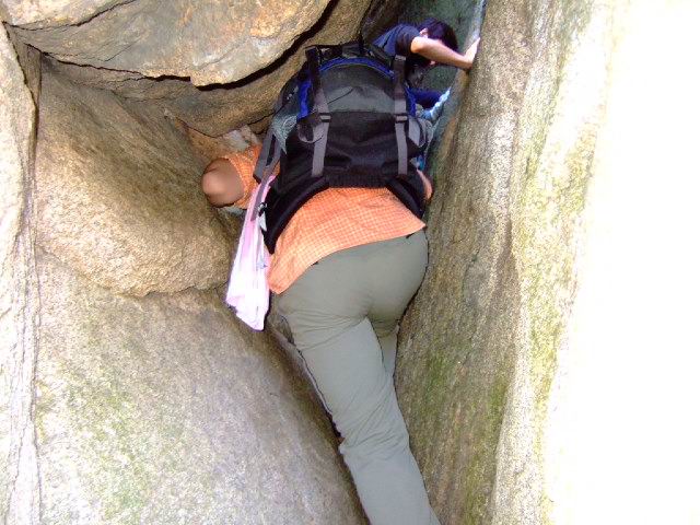 登凤凰山的初始阶段净是些个洞啊、缝啊的,总之,就是要夹扁你!