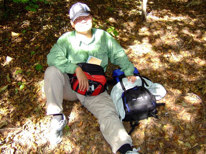 登凤凰山唯一比较是问题的——就是大伙把大包小包的都给背上来了,本来计划存在车站的,因为下午我们还是在车站坐火车去灌水镇;当时我想是试试自己能不能背着这12公斤上到山顶,虽知大伙也都要背着!就背着吧,结果是,后来的两天登山行程,那个山头大伙都背负前进,也充分检验了,大伙的体力还是可以的!只是大伙多数都是新购置的设备,在一趟凤凰山的登山之行之后,新包彻底变成破包了!