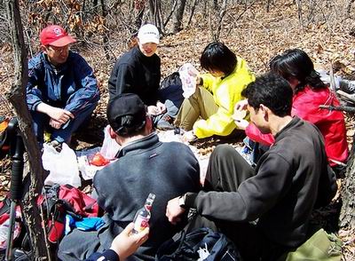 在一个环境很优美的地方开始了我们本次活动最重要的一个环节,开始叉饭。简直太丰盛了。在旱收+2的老孙的包里想变戏法似的,有黄瓜,有小柿子,自己做的辣酱,一小瓶的泸州老窖。还有叶子的牛肉,泥秋的自制灌肠,静石的咖啡,还有我的老婆饼等等,简直是把我们几个都站不起来了。小丽连但扑克的心都有了。哈哈!!