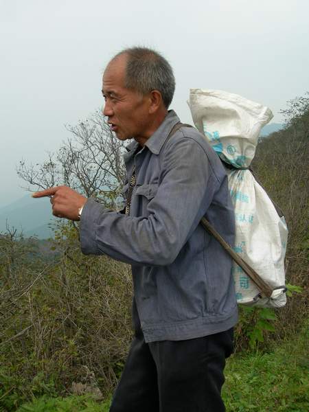 拥挤的小车,颠簸的乡间小土路,和我们的说笑声……很快就到了该下车的地方:车子再没有路能开为止!付了车费下车整理装备:该穿上的穿上、该戴上的戴上……我们的奇装异服很快就吸引来了附近的老乡,看我们的眼神还真有那种感觉……谁让我们说自己是驴子呢,自找的。听说我们是要上韭菜顶了山,老乡们一个个地开始惊惊异起来:山上有好多野兽,什么熊呀、野猪呀一群一群的,上山多危险呀;又听说我们还要在山上过夜,一位老大娘更是担忧起来:你们几个小伙子敢在山上过夜,还真是胆大,而这个“十六”的小姑娘也敢在山上过夜吗?真了不起。(咱们的穿越队伍里可没有什么十六岁的小姑娘,真不知道老大娘说的是谁?