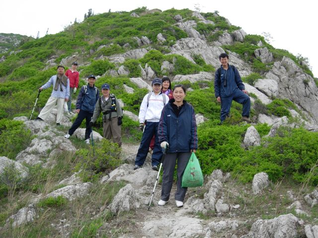 行程安排:2005年5月7日早晨10:00从夏家河子小公汽的终点站出发,向着西南侧远处的高山进发。50分钟到达安山寺。香火还可以,然后从西北侧的山角处向山上爬。西部的山体开挖很严重,已经挖到了山顶,行进时还得注意脚下。主峰鞍子山,较陡峭,且比较狭窄,岩石地貌,须手脚并用上山,山脊线明显,向东一直可走到砬子山,我们这次从中间的一条山脊向南下山,到由家村为终点。今年的雨水好,野菜很厚,我们每个人都满载而归。大家一致通过每年五一期间要做为一个固定活动内容:来此地挖野菜。