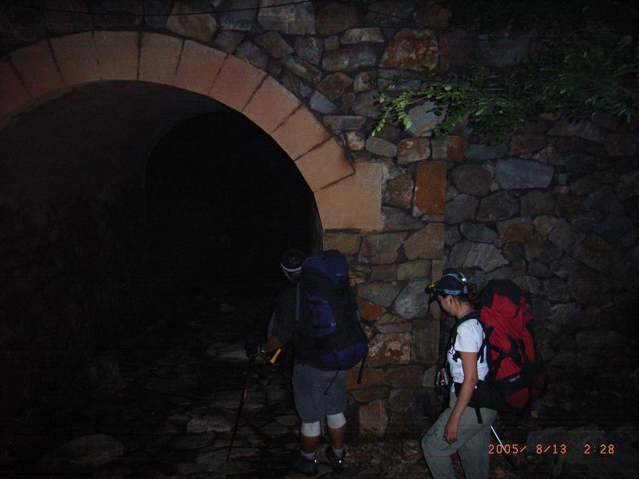1951我们到达大连大学,没吃晚饭的NICOLE坚持不吃也可以成行。OK2011我们到达观音阁大门口,右转上山,1小时后我们到达山脊,用上次定向比赛的奖品手电,我们开始了向主峰的进发。心中带着对流星雨的盼望。微弱的照明,险峻的山路,兴奋的心情,稳健的脚步,沉重的背包。2230,NICOLE饿了,几乎是就地休息打尖,我和叶绿素吸支烟等待小N23点多一些,我们发现我们没有走预计的路线上,我们多走了一个山坳,除非回头,否则不能从信号塔处的柏油路下到点将台-我们计划中看流星雨的地方。试探性的横切被大家一致判断为不可行,决定跟着清晰的小路下山,预计出口在点将台-朝阳寺之间的公路上,缓慢的下降,伴随着NICOLE激动人心的尖叫(我的心乱跳,以为遇到了蛇,实际上是蛾)我们下到盼望中的公路上,叶绿素-我们的开路先锋辛苦了。一次LOSE WAY,竟然走了一条信号塔下到点将台的土路,也算意外收获。