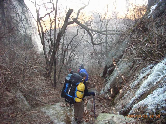 左转前行20米后又有分岔,由于种种原因我领着8个人沿右侧小路偏离了尖兵维生素和JACKY的路线,踏上了惊险的短线穿越