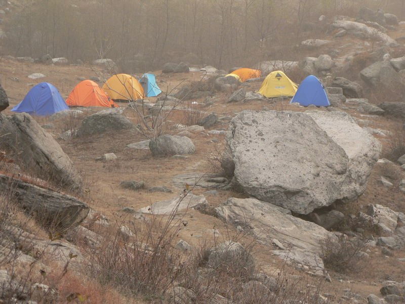 等洗漱完毕,垒好炉灶准备开火吃饭的时候已经7点半了,再上歇马已经是不可能了。大家碌碌徐徐起床后,淡蓝问了大家的意思,普遍不想再穿越了,希望轻装去找座小山爬爬。