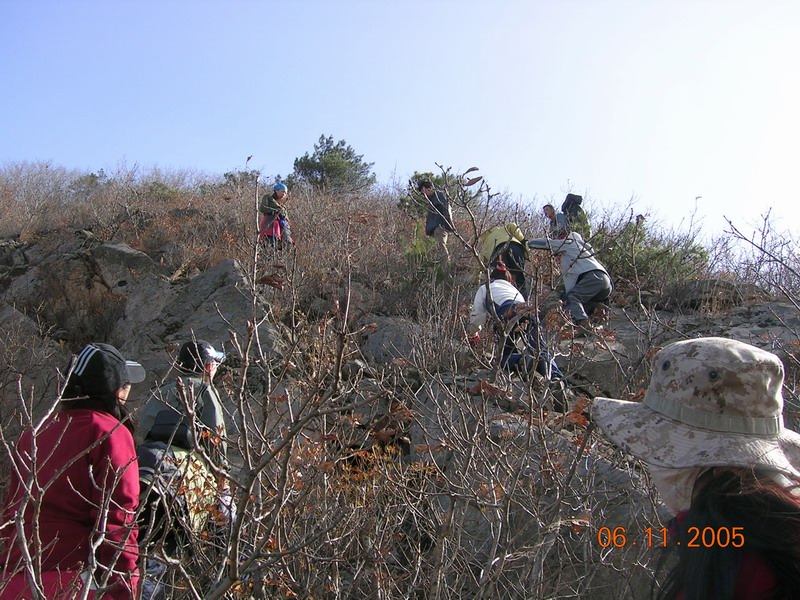 上升一段后,坡度开始增大到60度左右,路也没了(在歇马山和老黑山等地爬山总结:如果山上多齐胸的灌木时,一般都没有路,因为这些地方多桑树,蚕农放蚕时走的路很散,没有趟出明显的路)。
