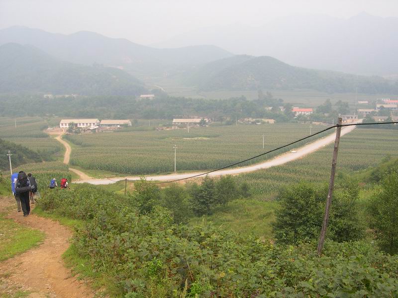 过了几个村庄以后,路两侧山的厚重就压面而来,夏季的山是葱郁的、灵秀的,因为越是沟的深处,也越加的安静。然后就是乘车翻过这道大岭,我们来到了二道岭,这已是往下韩(腐败队伍的目的地)拐的路口。我们的队伍先下了车。跟车上的同学们告别后,开始了我们的拉链之旅。