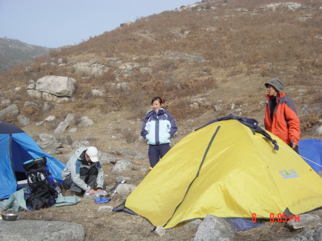 等洗漱完毕,垒好炉灶准备开火吃饭的时候已经7点半了,再上歇马已经是不可能了。大家碌碌徐徐起床后,淡蓝问了大家的意思,普遍不想再穿越了,希望轻装去找座小山爬爬。