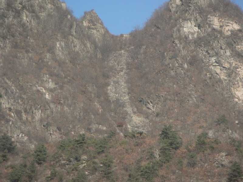 下山后回望,大家分析应该从顶峰西侧的先下到山脊在沿山脊下山。(如图)