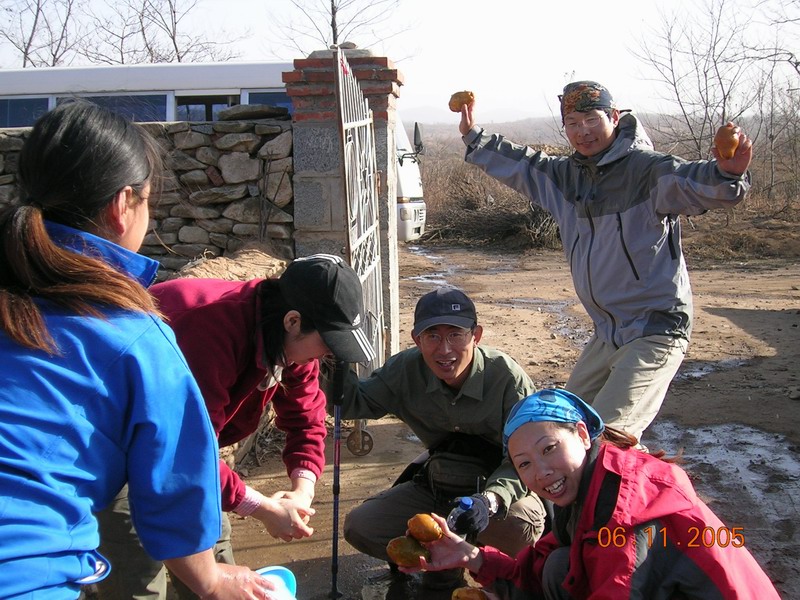 2点大家下到山下的村里和车汇合,洗漱以后,狂吃了一顿山梨还有苹果后,2点半大家开始上车回大连。