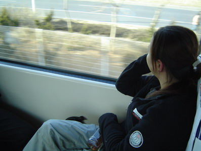 “上车找个地方放下包,猛地一抬头,就在那一瞬,发现了一个美女,很恬静的那种。慢慢的松开扶着包的手,任其倒向一边,眼光就停留在了那里。我可以很放肆的欣赏美,因为她看不到我的眼睛,在我和她之间隔着黑黑的墨镜。”