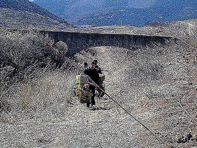 离开商量生计的哥俩,继续上路。郊外的空气很好,走在山路上,呼吸着枯树和草牙的味道,感觉很惬意。山脊时不时吹来的风还是让人感觉到有点冷,只有行走,才可以让自己的身体暖和起来。中午午休的时候,找了一个阳面的山沟,按组进餐。我们做了两锅汤,一大锅西湖牛肉羮,一小锅番茄牛肉汤,就着杂七杂八的干粮,大家吃的一扑哧的。这样的午后,晒着暖呼呼的太阳,喝一口热乎乎的汤,感觉生活很好!冬天,要给家人喝热的汤!