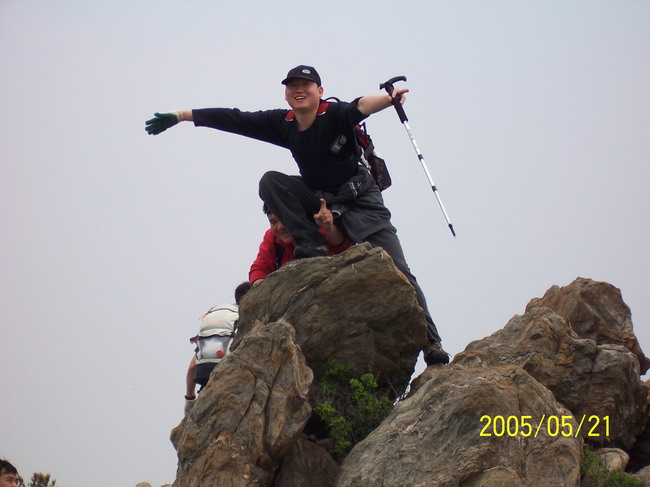 参加人员:静石、灵石、吉普车、SUV、吉祥、弥猴桃、银河、盖州人、美奂、alian、旱收、WZ、福气共计13人。  行程安排:2005年5月21日,天气不是很好,预报是小阵雨,早晨下了一阵,觉得不会下大,所以待大家询问是否还去时,很坚决的回答:“去!”。集合时发现,没一个人改变注意。将13个人塞进一辆面包车中,顺着旅顺北路直奔陈家而去,一路无雨,到达陈家时,开始下雨。还好小雨下得时间不长,就停了。大约10:30左右开始登山。顺着明显的山脊走,在远处看了一眼灯塔,和黄渤海分界线,因为下雨,视线不是很好,模模糊糊分不清。这不是我们的主要目标,顺着山脊向上继续前进。路上看到了几个很平的水泥台,不知是做什么用的,是专为我们露营用的?哈哈!上周有人在这露营。继续前进,天公不做美,又开始下起了雨。在雨中继续前进,直到有人饿得受不了了,不走了,在主峰的山脚下开始锅造饭。吃饭时间大约用了一个多小时。吃饭的时候并不知道主峰就在头上,结果吃完饭,我们没有登峰,有点绕了远路,接近主峰时,山上的士兵老远是出来“迎接”我们,我没有现他们打交道,顺着台阶下山,这里的台阶很容易让人起大黑山的台阶,到底之后都是盘山公路,公路很多,岔路也多,也许是因为阴天没有太阳的原因,也许不明显的转弯太多?第一次感觉到找不到方向了,幸好有人拿着指南针,确保我们的大目标是正确的。回想一下所走过的路线(图中的黄线), 在主峰附近我们还是有些绕远走了。不过本次穿越都是在山脊山进行的,没有专门去走盘山路。大约16:30分左右到达柏岚子村。 感觉到老铁山还是很神秘,不是一次可以读懂。有机会还得去体验一下。 穿越时间:5个小时。 交通攻略:9:10分有旅顺到陈家的大客车,14:00左右在柏岚子有回旅顺的大客车