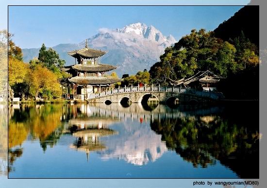 距城北18公里,海拨5596米、绵亘35公里长的玉龙雪山就宛如一条晶莹的玉龙横卧丽江。位于城北500米象山脚下的黑龙潭,又名玉泉公园,玉龙雪山正好倒映在园中的水面上,清澈的湖水倒映着玉龙的巍峨,这幅画面曾经作为丽江的标志为许多人所熟悉。当然,还有深藏高山之中的草甸风景云杉坪、牦牛坪;那虎跳峡的惊险让许多旅行者心向往之;拉市海湿地会招来翩翩的候乌;黎明的丹霞地貌不让石宝山,也不输三山五岳。丽江是纳西、彝、白、回、壮、汉等民族的集聚地,所以除了它秀美的自然景观外,其独特的纳西传统文化也让人感受颇深,东巴文、东巴经、纳西古乐、丽江壁画,无不展现出纳西族的传统生活面貌和其他民族的关系,同时,丽江古城也是“活着的茶马重镇”,是茶马古道兴替盛衰的参与和见证者。