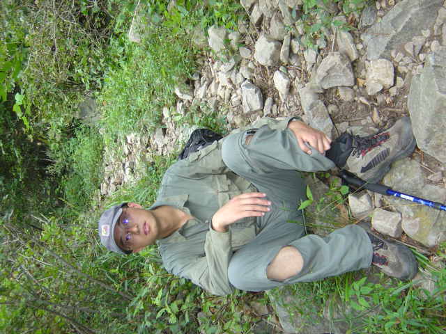 车开了,雨渐渐的大了,淡蓝兴高采烈的说雨大了我们就去腐败!可就在我们对腐败充满了向往的时候,雨渐渐的停了。车在一个集市上停了下来,在这里我们有了一个惊喜的发现,在我们的队伍中,竟然有一个七尺男儿害怕小小的没有爪子和牙齿甚至连蜇人的毛都没有的蚕,这让我们接下来的行程平添了很多快乐。在一个路口,我们下了车,合影,告别,自虐开始了。