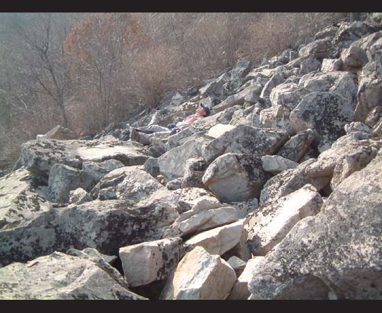 仰卧在烂石滩上小憩的赵大哥