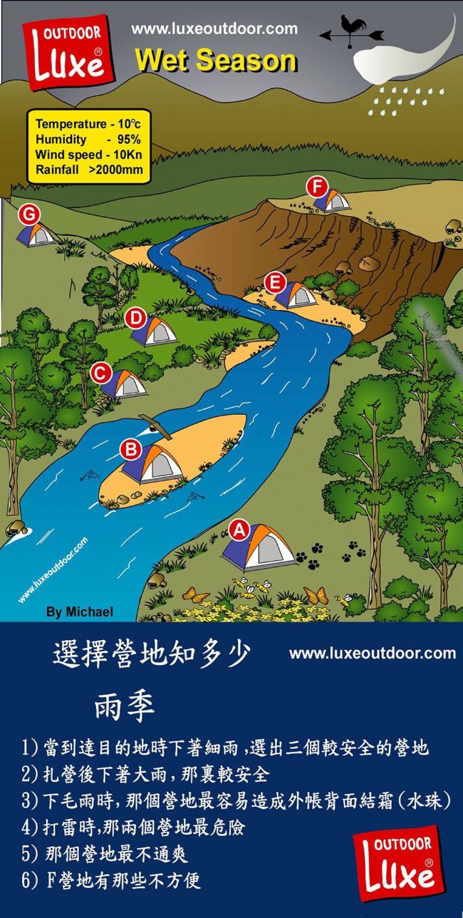5、那个营地最不容易造成外帐背面结霜(水珠)  F营地,周围较干燥