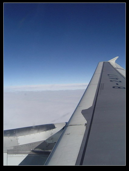 这张也不错啊,都说"物以稀为贵",在飞机上拍出的蓝色就是不一样,真是干净.这照片才让人感觉在"三万英尺的高空",离家的感觉