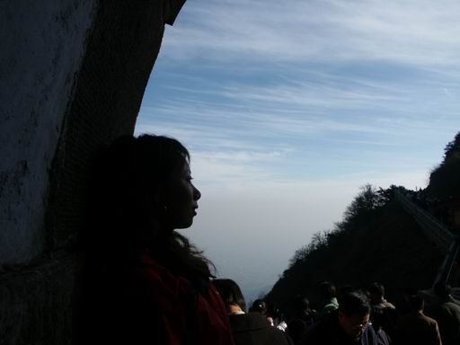 太阳很暖和,都困了,然后,我就看到有一队驴子浩浩荡荡鹤立鸡群的从我前面走过去:负重、登山杖。俺看着他们的装备,很想知道他们是从哪条路上来的,肯定不是平淡的台阶咯,肯定有不一样的风景吧。胡思乱想的差不多了想举起相机拍一张时他们已经走远了,后来到玉皇顶后俺四下撒摸,却在没见着驴子门的踪迹,不知道他们把帐篷扎到哪里去了。