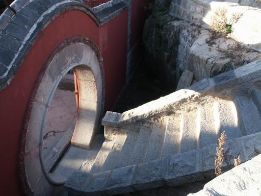 中天门--南天门,台阶又见台阶,没什么意思,正好见着这个题字,俺停下脚步明目张胆的大声的读着:“河山好大!”行人纷纷侧目,俺目不屑视做坦然状,通行的mm倒是羞的跑到一旁做不认识俺状……嘿嘿。