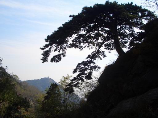 上山的时候时间紧迫,没有吃东西,山上到处都是“泰山名吃——煎饼卷大葱”,2元/份,我估计要吃饱我得吃10份,不过总的来说味道还不错。俺和通行的mm正举着煎饼大葱享受的时候看到路边这棵树,mm惊叹道:“这棵葱不错!”葱。。。松。。。我倒~
