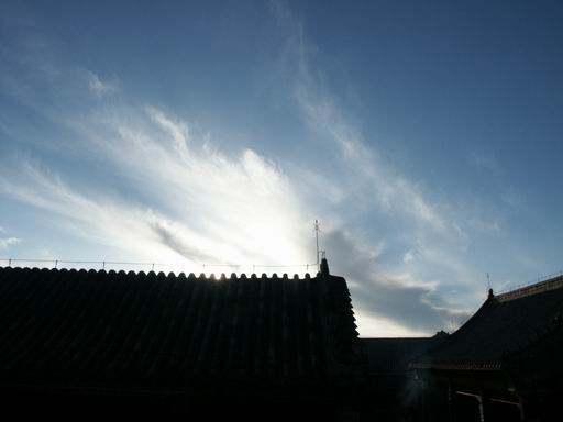 吃过了优惠价2元/个的馒头,回到房间,7点多。把租来的军大衣和被子都裹在身上,在有卫生间和电视和墙壁的“豪华”房间里开始等着太阳。合衣而卧,困的要命却怎么也睡不着,真怀疑俺有高山反应,嘿嘿,不过。。。在济南的时候海拔很低似乎也是睡不塌实啊……