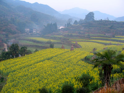 ——第一次走进油菜花地,近距离看油菜花,闻油菜花。虽然李坑的油菜花地比东北农家的自留地大不了多少,而且还竖着牌子:进地罚款。可是,谁能抗拒阳光下大簇嫩黄的油菜花娇艳艳地向你耍嗲呢?我不能。啉哒也把持不住,走进油菜花地回眸一笑,镜头里一片嫩嫩的鹅黄色包裹着她,顿时理解梅艳芳那首《女人花》的意境:女人花摇曳在红尘中,女人花随风轻轻摆动。。。