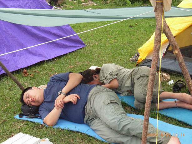 现在的睡眠是比较好了,已经可以把自己睡晕过去到什么都不知道的地步,不仅没有听到你进帐篷,连友山的如雷鼾声都没有听到丝毫,后背被蚊子隔着衣服叮的大包至少有一元硬币大,痒啊。谁能告诉我,谁能告诉我,蚊子蚊子,,我怎么对付它!!!
