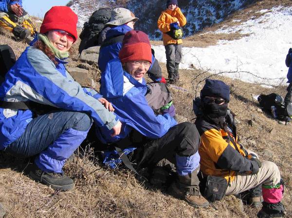 阴面的积雪还是很厚的 zNLob7hx.jpg 大家踏雪而行 4TVz5GyQ.jpg 翻过第一个垭口 bVQGLPsP.jpg 小憩