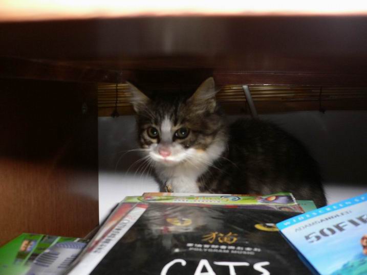 今天早上,我花费了15分钟寻找了床头下、桌子下、报纸堆,冰箱后。。。都没有发现他的身影,只有15自己在房间里熟悉的蹦达来蹦达去。带着满心的牵挂关上门,想着,也许初一到了晚上就适应了这个新环境,就肯吃我给他准备的猫粮,就肯让我给他洗澡了……