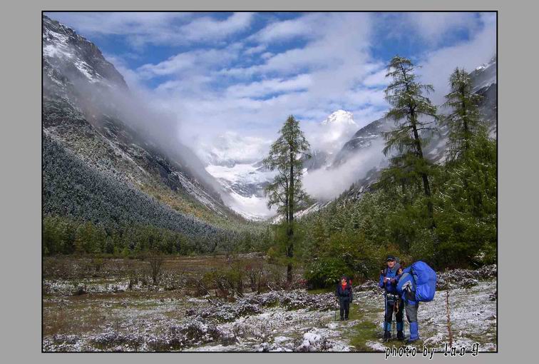 为了让大家感觉到形成的连续,这一张的角度跟上个帖子(2日的垭口翻越)最后一张片子是一个角度。仅仅一夜之隔,大雪盖住了天地间的一切东西。