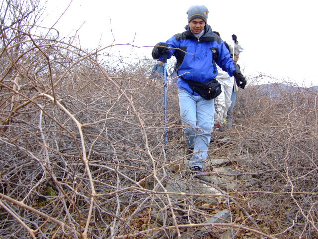 总结——很抱歉此次活动组织的不是很有意思!即没看头(景色——山上一片破败景象),又没玩头(没附加一些游乐或者游戏之类的点缀,下次改进——让大家乐哈哈一路)!蛭?猩街写┰侥谌荩?行┩?У呐涫涡枰?⒁猓??话紫沽耍×硗猓?欢ㄒ?嘲??庋?艹浞终展税踩?矫妗??饕?悄馨涯愕男∈痔诔隼矗“巢慌伦橹?疃???掠幸馔馇榭觯?lt;br>以下内容给新驴看看——冬季已经来临,喜欢户外的同学,不必准备很多装备来应付这种活动的,千万不要成为户外装备的奴隶!户外装备得了银子了,除非你很有钱,不太在乎!冬季活动呢,只要注意我说的方面就成了,一个是鞋子,这个呢,应该奢侈一点,毕竟脚是你最该爱护的对象,成天的载着你到处流串,多辛苦!有一双合脚舒适的鞋子很关键!因为经常要在山内溜达,所以尽量还要考虑鞋子的防滑性和耐磨性能!再就是花个六、七十块搞套吸湿排汗的内衣比较有用,因为爬山或者徒步不可避免的会出汗!出汗呢,就会湿衣服,一旦风吹或者停留,你会感觉身上嗖嗖冷!不仅如此,还会坐病,至少你的身体不好,可能就会感冒!这种东西,虽然不能把你湿湿的表皮都能透干,但还是能起点作用的!其它的就无所谓了,衣服呢,找个不怕刮的,或者经刮的,或者坏了不心疼的……都行!总之,不要把要过年的新衣服拿去穿山上去!要是那样——彪了!