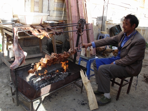 tBSVIvaD.jpg 烤羊肉,兔肉,应该也算是小镇的风味特产了吧。 EIFCGvhd.jpg 盛装穿街而过的小孩 I2JcDhuI.jpg