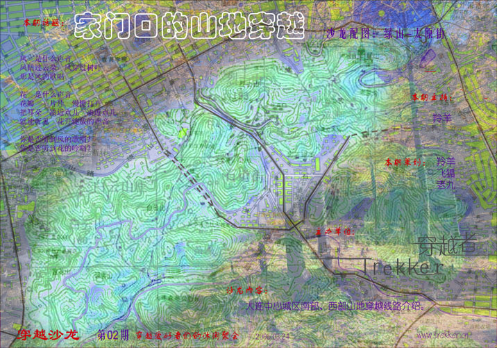 02期,家门口的山地穿越——360度山地穿越路线及相关活动介绍。把最近的近郊穿越线路介绍给大家,找走过这些线路的朋友来介绍线路,以及当时的活动情况,同时,可以考虑把这些线路,逐段的做成明信片大小的发放出去,目的就是普及最基础的穿越线路