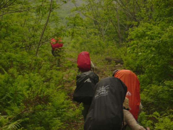 可是,在他们为我们为自己忙活完了之后,大家也都充分的认识到了当时是绝对没有登顶帽盔山的可能了。。。帽盔山的险峻,天气的恶劣,都是不言而喻的;而且我们还是负重登山的。做出下撤的抉择是艰难的,尽管每个人都不舍得放弃,可是没有选择的余地。对于我,向来只是在乎这样一群朋友,至于登顶对我已经不是很重要了。安全始终都是第一位的。