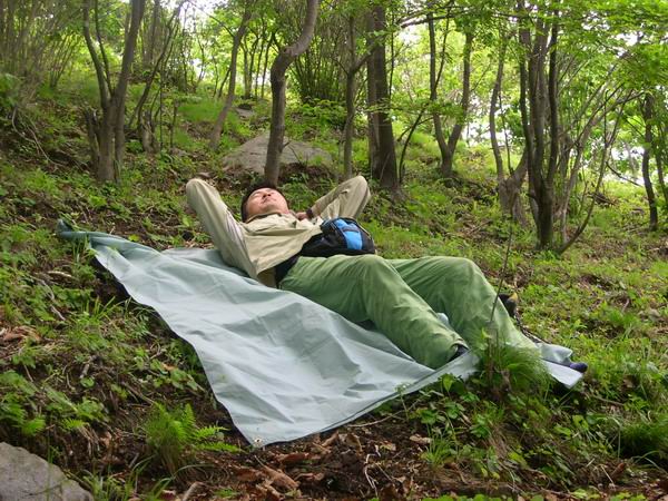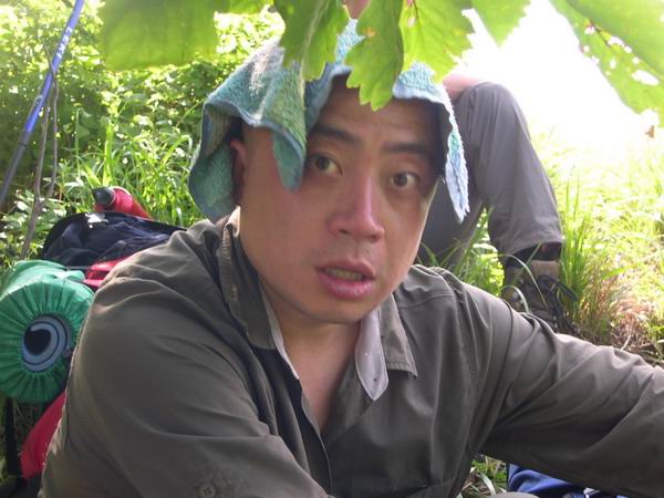 三点前后到达计划中的露营地,一块山腰的平地。只是,地方虽大,并不很平,有些老乡在这里种树苗,旁边的枯草地还有很多的小虫。
