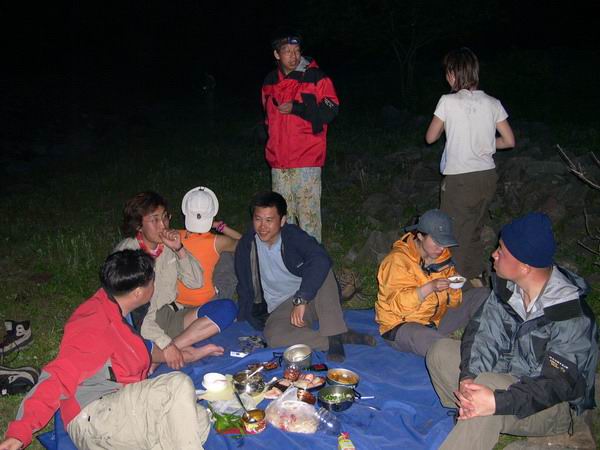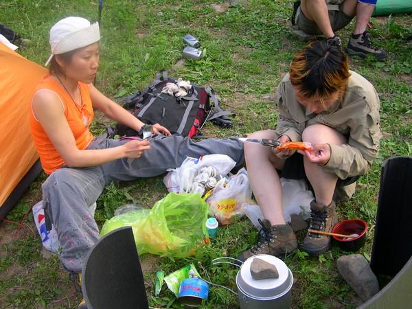 这一次组头石头真得很辛苦,六个人,可是最大的一组呢。三位美女,是女生最多的一组。与三位美女同帐,石头的艳福哦……