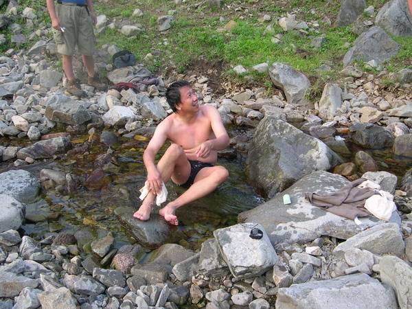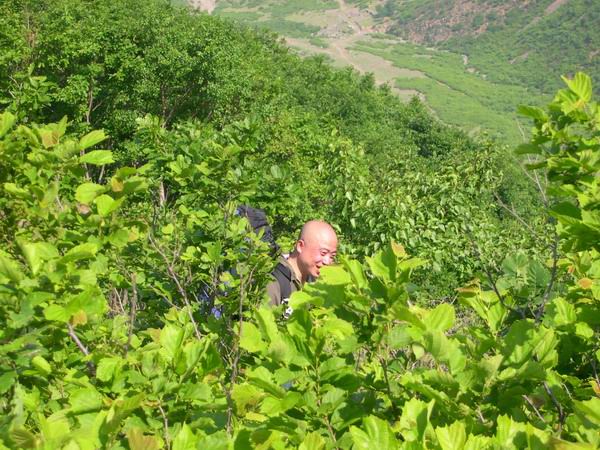 后来经过比较发现,还是下到谷底比较好,听说那里有溪水、还有一块很大的草地可以露营。于是,队伍又陆陆续续的下撤到沟底。