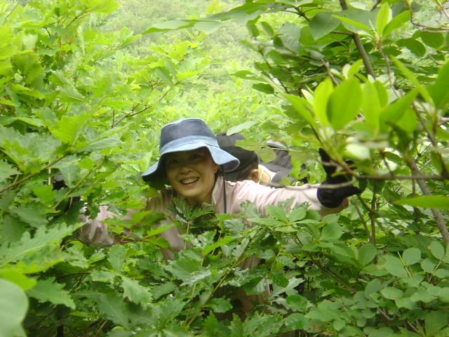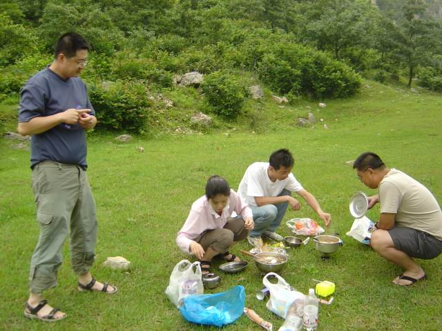 ——从没想到自己我行我素的一句话,会招来那么多是非。还是不喜欢多解释什么,明白我的终究是明白我的,不懂我的解释再多也多余。不管怎样,我还是喜欢和自己喜欢的朋友们一起腐败,自虐。。应几个朋友的再三要求和开导,做下活动总结&游记,虽然我这个召集者只是挂名而已(一起出去的每个人都做了力所能及的工作帮助我),但还是要有始有终。回来面对老赵大哥的表扬,我真得无话可说,只是有些惭愧,希望以后我会成为一个成熟的领队,呵呵。 几经周折,终于和几个喜欢的朋友上路了,开始了我们向往已久的天门山之旅。遗憾的是,邀请了几位很喜欢的朋友没有同行,缘分大概就是这样了,是你的终究会是你的。这一路走来,错过的可能不只是风景。 还好,很少有什么能影响我周末出行的好心情,尤其这次有两个新朋友加入,行者和维生素。由于奔跑兄因为工作原因临时退出,临时也在拉不到人了:(原本8个人的形成就变成了7个。 一路上很顺畅,zy的驾车技术也很好,8点40多我们出了高阳高速路收费口,一路经庄河仙人洞,塔领,拐进了天门山景区。为了找个稳妥地停车地,zy和维生素跑前跑后,这期间老赵大哥和行者去看看附近有没有合适的露营地。因为天已经很晚了,大家也很疲倦,如果可以,考虑就在附近露营了~等着他们回来的时候,生平第二次看到了萤火虫哦^o^虽然在夜深人静的野外,亮闪闪的东西在空中飘过有点恐怖,不过还是很喜欢这样可爱的小精灵。 终于车停好了,我们决定还是到原定的露营地点,这样第二天也可以不再动地方了。夜晚的天门山地区湿气很重,很像毛毛雨。大家带着头灯,一路摸黑涉水走在去年我曾走过两次的小路。似曾相识的感觉已经找不到了,今年雨水太多,小路两边的植被非常茂密。终于走到了一处很平坦的草地,已经12点多了吧,大家谁都不想再走了。于是安营扎寨,准备睡觉啦。最近睡眠严重不足,我几乎是倒下去就睡了,外面竟然还有三位腐败的弟兄下半夜开始喝酒吃烧鸡,佩服啊。。。大概是在大家都进了帐篷准备睡觉的时候,天下起了雨。反正我基本已经在和周公约会了,不记得那么多了。 周六早,是被吵吵嚷嚷的声音吵醒的,大家好像都起床了。。。天啊,,叶绿素竟然已经喝光了三罐啤酒两罐可乐,5555555555555,那是维生素特地给俺带地!:( 天阴,没有太阳,雾气也很重。和13在小河里洗脸,很喜欢这样回归自然的感觉,周围群山围绕,真想在这里住一段日子,奢望阿~~~13做的早餐还是那么的诱人,大家狼吞虎咽的吃过了之后,决定去爬山。只有zy好懒哦,要求留下来看家——其实呢,他是想通过老乡打听一下那里的花姑娘行情~ 由行者带路,13,我,老赵大哥,叶绿素和维生素一行6人就出发去爬露营地后面的山。下过雨,山路很滑,还好山不是很高。刚上路,行者发现了一条小蛇,好可爱哦。只有一根筷子的长短,竟然毫不畏惧,张着大嘴想咬行者拿着的小树枝。很可惜,因为去年步云山的关系,我很害怕蛇宝宝的妈妈在附近,不敢靠近拍照,拍出来的pp也有点虚:(可真的是很喜欢这条蛇宝宝,只是还没有勇气带它一起回家当宠物。。 一路攀爬,行者不知道是因为体重的关系,还是平时锻炼的关系,走路很轻巧,不费力也几乎不留下什么脚印就走得好快。剩下我们就只好紧紧跟着了,哎,行者兄,下次记得照顾照顾我们这群老弱病残哦~~攀过一块蛮大的岩石之后,就登顶了,哈哈。这个时候手机的信号来了,。看到奔跑兄因为加班没fb成气的吐血,好歹也安慰一下俺了~~~会当凌绝顶,一览众山小。呵呵,虽然不是最高峰,可是还是很舒服哦,就是雾气太重。极度恐高,我依着一棵松树站在一块大石头上,看着大家四处散着,到处走动,可我就是害怕。。。看着一路帮我们背包的两素兄,哎,顿生敬意啊:) 下山的时候,大家决定不走回头路了,呵呵,行者和维生素带路,我们沿着山北坡的小路下山了,想从北坡绕回去。在半山腰竟然再次看到了天女木兰,很喜欢这个只生长在某一海拔的物种。想带一株回来给妈妈看的,可惜,山路很滑,终于在走过一处比较比较湿滑地方时掉了,结果不幸被踩在了叶绿素的脚下。。。:( 走到山下,我才发现竟然回到了去年那个兽医带我们上山的那个地方了。和大家一起,到了小河边。发现行者已经半裸要下水了,哈哈。要不是因为初次出来,我是一定会等他下水拿走他的衣服,拍下饭票的。。。哎,做人还是要厚道哦。 再次走回了去年的露营地,感慨颇多,和13念叨着去年的老人,心里想着一去不复返的青春。时光匆匆,到最后留在身边的朋友能有几个。。 当大家返回露营地的时候发现,zy果然又是在和老乡侃大山。哎,今年不知道谁家的花姑娘遭殃~午饭过后,大家自由活动,zy,13,老赵大哥午睡;两素~行者三人去游泳了;555555555,俺不会游泳,也没有横渡选手陪俺玩,只好也午睡了。朦朦胧胧间,被三位凯旋而归的gg叫醒打扑克,嘿嘿,最终反败为胜。不过用bobo的话讲,俺这情场还是会一直失意下去了! 接下去好像就是晚饭,呵呵,反正除了吃还是吃~~可怜行者,好像出了豆腐干和竹笋就再什么能吃的了。看着他苗条的身材,让我这个羡慕,哎,减肥的代价太大,我只能顺其自然了:(晚饭过后,大家聊天,很舒服,我只是静静地听着,当然还在不停的吃喝。当zy他们去睡了的时候,行者点起了篝火,可是因为太潮,生火很费劲。在两素兄的配合下,还是点起来了:)四个人围坐