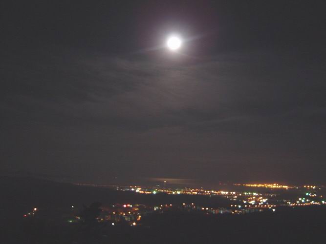 哇塞,pp拍得棒极了,夜景的效果很好呢。月亮很漂亮,月亮女神别缩着脖子就更完美了