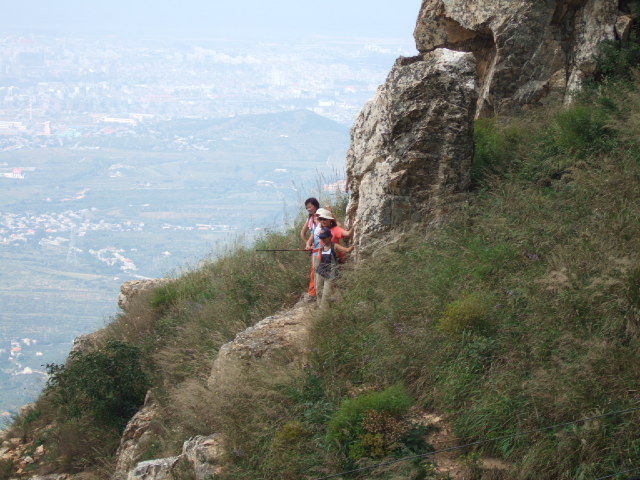 原来选择这个位置就餐——视野好! 后来放弃了——因为招风! 怕喝一肚子西北风回来! qv6Kimel.jpg 爬另一座电视发射塔山峰的栈道!不让游人进入!