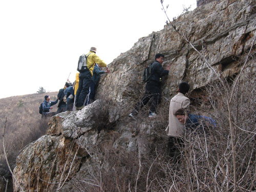 二登步云山 带着第一次的遗憾,我们开始了第二次的步云山之旅。因为有大力家哥哥带路,我们很顺利地从一条捷径登上了山顶,不愧是辽南还是大连的第一高峰阿,呵呵~~这位哥哥还带我们去了那个山洞,还记得大家当时因为是白天爬山谁也没带头灯,是那哥哥生了一堆火给我们照路,在黑漆漆的摸了一半的时候,我想起了我的电话上带个小手电,
