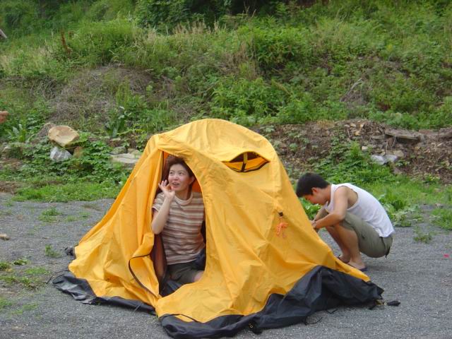 这就是对自己帐篷很有信心的梁栋~~~~ sVkH8vzi.jpg 一日的FB似乎很难满足大家,于是兵分两路,我们几个号称要自虐的人第二天一早上路了,开始了棠梨沟-大石洞-龙王塘的穿越。因为最初说是FB游,俺是穿着牛仔裤,背了一大包FB食品去的,至今还被某些不厚道的人笑话不过还好,也是那次打劫了一条速干裤,size很合身阿~~~~