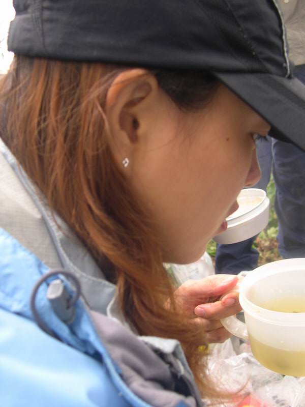除了正在照相的我,镜头里的六个人是不是都在往嘴里塞东西?带了午餐、不带午餐,不是问题,只要俄了,都是一样的吃。