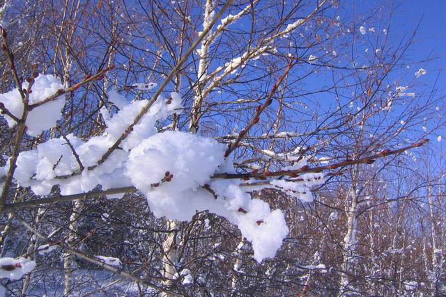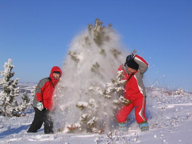 D3:凌晨4点下车,当时室外温度零下40度以下,一定作好防寒准备,下车不出站,直接向前走200米左右,右转就是一圈小旅馆,10元一床,室内温度达25度以上,可以吃点东西,然后睡觉。10点钟起床,正式开始了阿尔山之旅。午饭后找到滑雪场去滑雪(没有单板),正常滑雪价格是平时每两小时80元,节假日100元,我们在交通局对面的民族饭店吃饭时了解到,老板(车铁柱)的儿子在太伟雪场作教练,帮忙给我们打了七折,每两小时70元。雪场初级雪道是拖牵,中级雪道是索道,中级雪道坡度22度,雪道很长,近千米,全部是天然雪,没经过碾压,在大连安波滑雪的同学极其不适应这种雪况,几乎不断地摔跤,没滑过天然雪的同学一定要试试,但安全第一。滑雪过后是腐败晚餐,然后可以去洗温泉,温泉是阿尔山特色,但区别很大,有6元的据说是只供当地人使用,洗澡需提供人份证件,条件赶不上大连的大众浴池;有48元的,是从一48度热泉引过来的,但到了这里,据说也就30多度了,条件还可以;还有168元的,超豪华型,值得一去,里面有37眼泉,有冷泉8度、10度、20度的,也有热泉,48度、37度、35度等等,具体治疗疾病的功效不同,还有可以喝的有疗效的五脏泉等直接饮用泉水,室内装修格局类似于大连新寨子的鲜花饭庄,只是规模还要大些,热带植被更多。