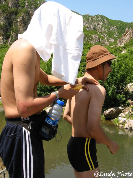 关于那个照片,我真得很冤阿。。。。 当时还不认识索菲鱼,就因为我们在水边坐的,他让肥鸟要裤子,打死也不上来我才认识他的。至于照片那是肥鸟拍的哦
